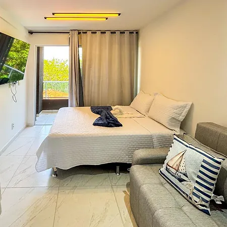 Offering a rooftop pool, Cg115- Studio Rooftop Com Piscina Infinita - Tv Gigante By Oasis Ferias Porto de Galinhas is located 6 minutes' walk from Shrimp Tecmares. Guests can relax and take in garden views from a terrace of this apartment.